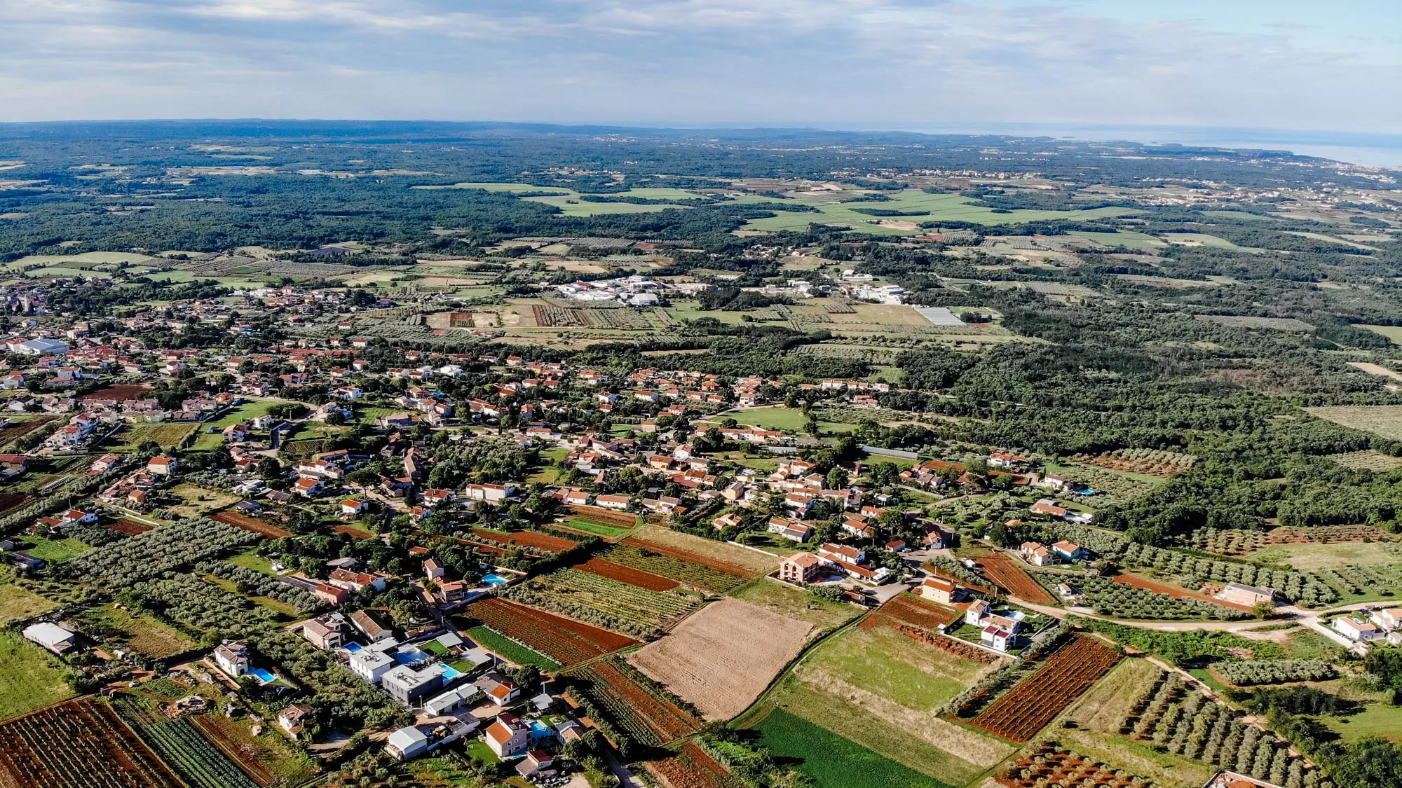 Der Ort Kastelir liegt in zentraler istrischer Lage in Meernähe mit guter Autobahn-Anbindung und ist rund 10 km von Porec entfernt. Kastelir ist ein idyllisches typisch istrisches Dorf und bietet fußläufig mehrere sehr empfehlenswerte Restaurants, die teilweise ganzjährig geöffnet sind. Durch einen gut sortierten Supermarkt in fußläufiger Nähe zur Villa sind Sie bestens versorgt. Große Supermärkte, Fachmärkte, Filialen diverser Einkaufsketten und auch Systemgastronomie (wir empfehlen jedoch die fantastischen istrischen Lokale in der näheren Umgebung!) sind nach 10-minütiger Autofahrt schnell erreicht.